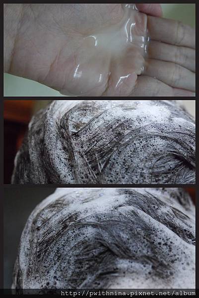 取適量洗髮乳按摩髮絲立即均勻起泡